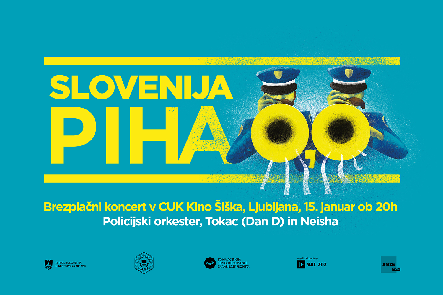 Dobro sprejeta akcija Slovenija piha 0,0, ki se izvaja pod okriljem Ministrstva za zdravje, se bo nadaljevala tudi v decembru in bo potekala od 2. do 20. decembra. Policisti bodo sicer poostreno nadzirali psihofizično stanje voznikov na slovenskih cestah vse do 31. decembra, tisti udeleženci, ki bodo do 20. decembra pri preizkusu alkoholiziranosti napihali 0,0, pa bodo imeli možnost sodelovanja pri žrebu vstopnic za zdaj že tradicionalni koncert Policijskega orkestra z letošnjima gostoma Tomislavom Jovanovićem – Tokcem (Dan D) in Neisho. Koncert bo 15. januarja 2020 v CUK Kino Šiška v Ljubljani. Med decembrskimi treznimi vozniki bo izžrebanih 250 prejemnikov dveh vstopnic za koncert.